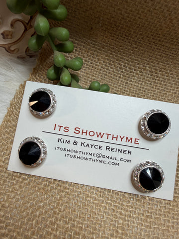 Black rhinestones are bold dramatic and incredibly elegant. These are a great addition to any evening class.