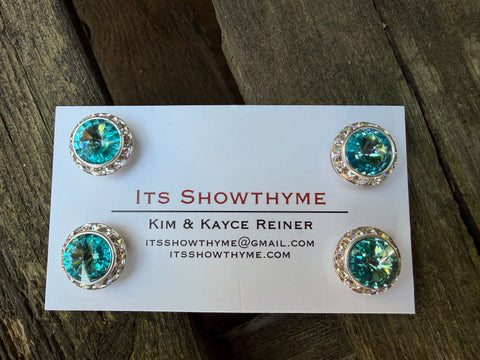 Lt turquoise rhinestones sparkle in a vibrant blue-green hue that feels fresh and full of energy.
